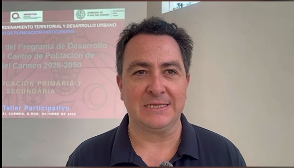 El secretario de Ordenamiento Territorial, Hernán González, informó que actualmente se desarrolla el quinto taller informativo, centrado en la zonificación primaria y secundaria del territorio, donde se abordan temas como la conectividad urbana, las vías de desfogue, la posibilidad de un periférico, la integración del Tren Maya y la protección de zonas con ríos subterráneos.