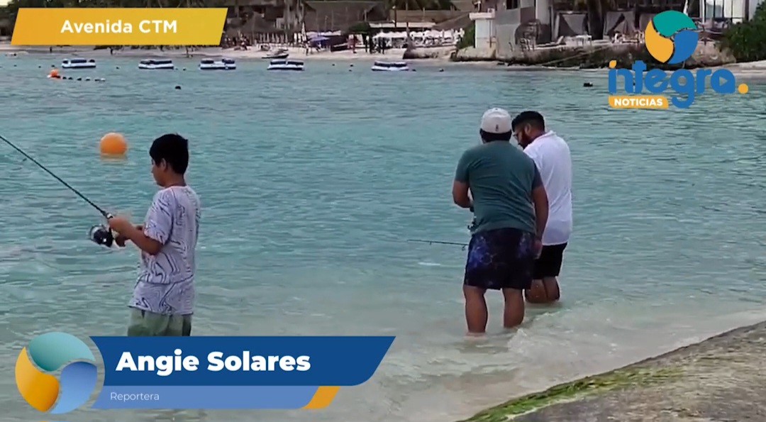 Durante el atardecer en la playa de la avenida CTM, en Playa del Carmen, imágenes recientes muestran a varias personas practicando pesca de orilla desde la costa, aprovechando la calma del mar y la luz dorada del ocaso. La actividad se concentra alrededor de las estructuras conocidas como “ballenas”, costales de arena instalados para mitigar la erosión y que, además, funcionan como puntos de atracción para la fauna marina.