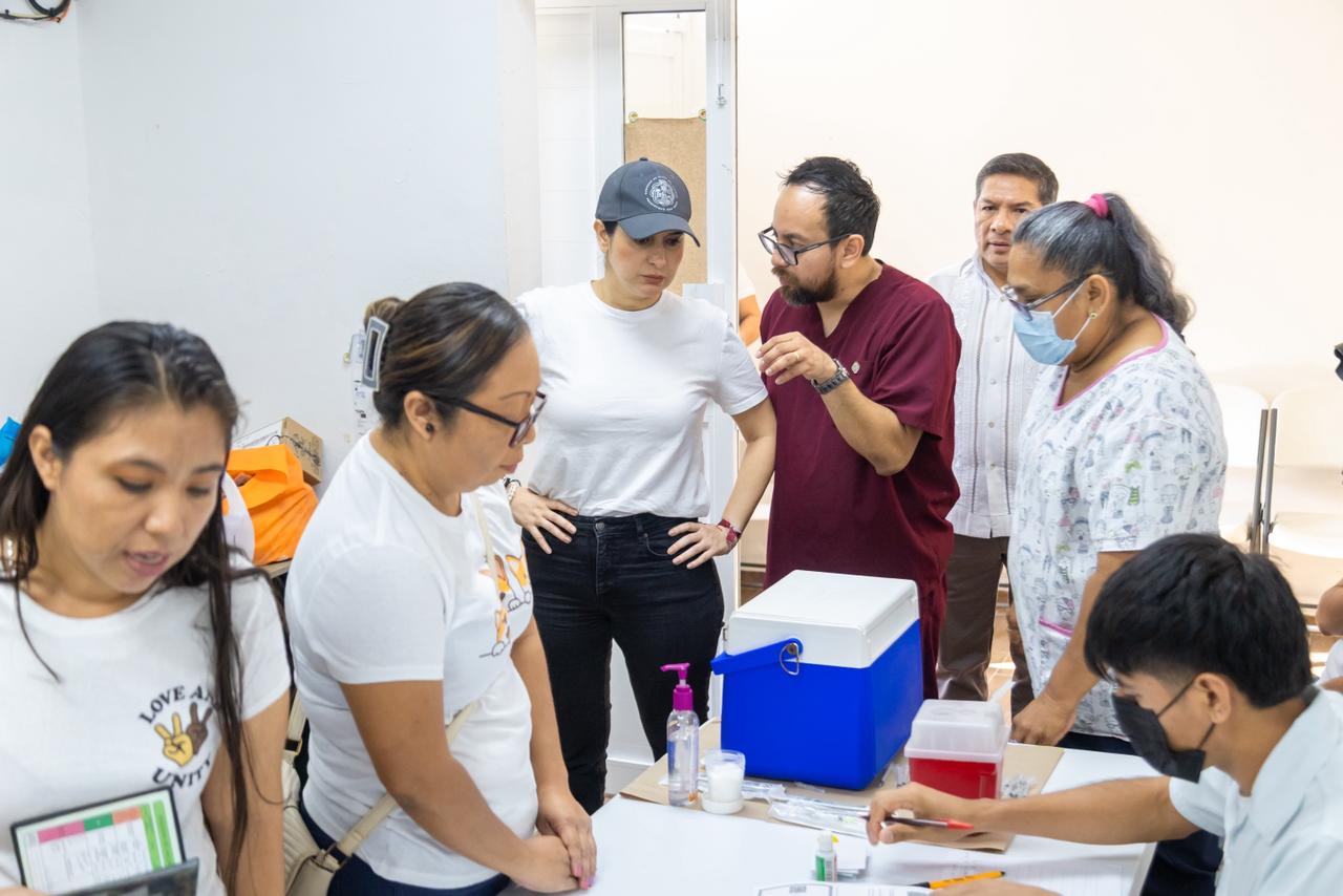 Previo a la supervisión, la presidenta municipal acudió al Centro de Salud de la localidad junto al secretario de Salud, José Antonio Uribe Trujillo, donde se desarrolló una jornada de vacunación contra el sarampión como parte de las acciones preventivas en salud pública.